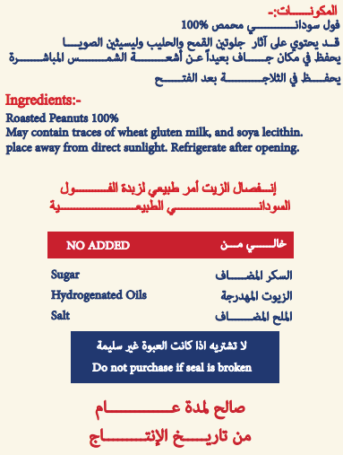 مصنوعة من الفول السوداني فقط بنسبة 100%، بدون أي إضافات أو محليات، بطعم أصيل وقوام طبيعي غني.